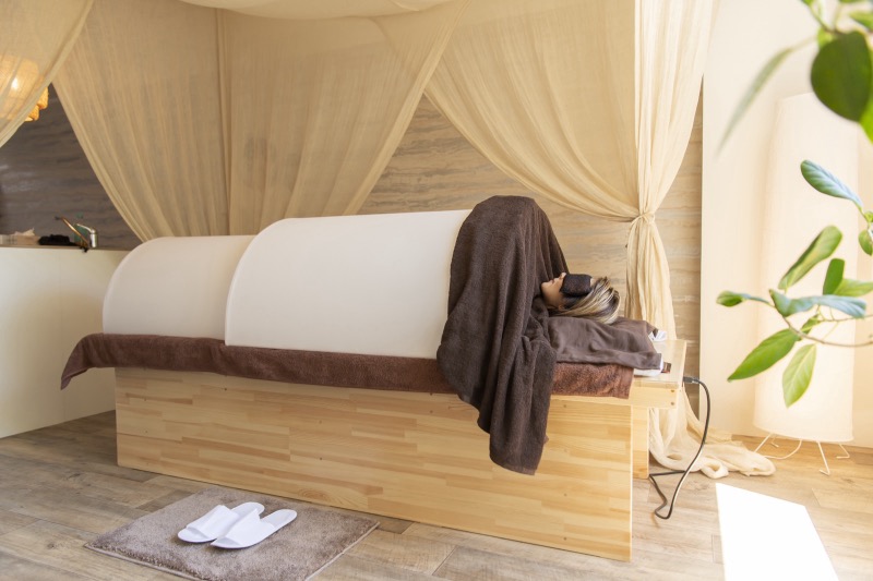 岩盤浴サウナ 2024-12-25 未分類 家庭用もございます。 自宅で毎日岩盤浴サウナ入れたら最高ですね! お気軽にお問い合わせください。 岩盤浴+遠赤外線ドームサウナ。 お顔は出して入るので、苦しくなく、深部からしっかり温まります。 美しい玉の汗のデトックス